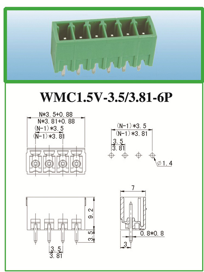 WMC1.5V-3.5/3.81-6P PCB線路板接線端子